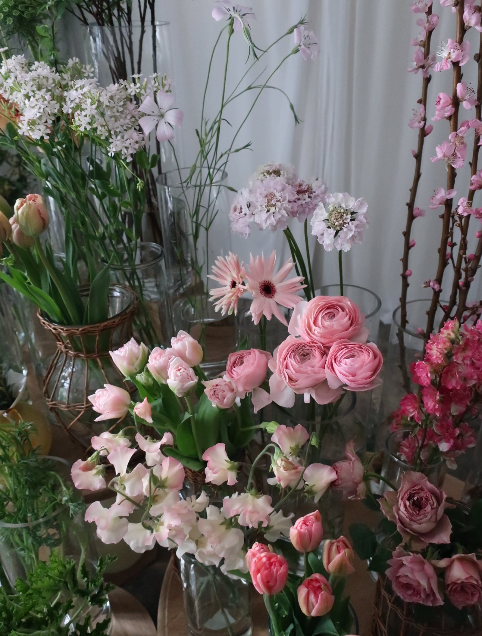 小分けにして色々な花瓶に飾っても